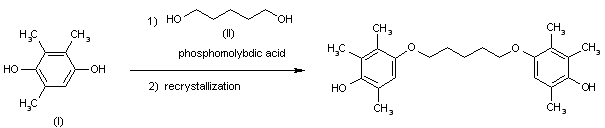 The target product can be obtained by condensation of trimethylhydroquinone (I) with diol (II) by means of phosphomolybdic acid in refluxing toluene followed by recrystallization from n-hexane/ethyl acetate.