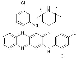 Hydrogenation of 1-anilino-2-nitrobenzene derivative (I) over Pd/C affords the corresponding diphenylamine (II), which is oxidatively condensed by means of FeCl3 and HCl or AcOH in EtOH to form the iminophenazine derivative (III). Finally, the target compound can be obtained by reaction of (III) with substituted amine (IV) in refluxing dioxane.