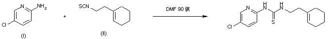 | 合成路线图解说明: Treatment of 2-amino-5-chloropyridine (I) with 2-(1-cyclohexenyl)ethyl isothiocyanate (II) in N,N-dimethylformamide at 90 C produced the target thiourea. |