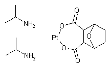 Hexachloroplatinic acid (I) was reduced to potassium tetrachloroplatinate (II) using hydrazine. Treatment of (II) with KI produced the tetraiodoplatinate (III), which was converted to the diamino compound (IV) by reaction with isopropylamine. Conversion to the dinitrate (V) was then effected by iodide ion exchange with silver nitrate. Diels-Alder condensation of maleic anhydride (VI) with furan (VII) furnished adduct (VIII), which was further hydrogenated to (IX) using Pd/C. Then, basic hydrolysis of the cyclic anhydride in the presence of the platinum complex (V) afforded the title compound.