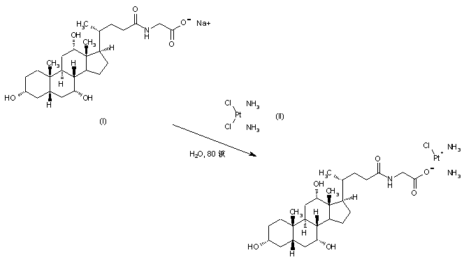 The title compound was obtained by mixing aqueous solutions of sodium cholylglycinate (I) and cis-diamminedichloroplatinum (II) at 80 C.