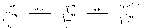 By cyclization of cysteine (I) with formaldehyde in water (1-6) followed by treatment with NaOH (6).