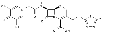 The reaction of 7-aminocephalosporanic acid tert-butyl ester (I) with 3,5-dichloro-4-pyridone-1-acetic acid (II) by means of dicyclohexylcarbodiimide in CH2Cl2 gives 7-(3,5-dichloro-1,4-dihydro-4-oxo-1-pyridylacetamido)cephalosporanic acid tert-butyl ester (III), which is hydrolyzed with trifluoroacetic acid yielding the corresponding free acid (IV). Finally this acid is condensed with 5-methyl-1,3,4-thiadiazol-2-thiol (V) by means of NaHCO3 in a hot mixture of water and acetone.