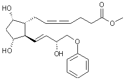 The condensation of phenol (I) with ethyl bromoacetate (II) by means of NaH in refluxing dimethoxyethane gives phenoxyacetate (III), which by condensation with dimethyl methylphosphonate (IV) by means of butyllithium in THF is converted into dimethyl 2-oxo-3-phenoxypropylphosphonate (V). The Wittig condensation of (V) with (2抋lpha-hydroxy-4抋lpha-p-phenylbenzoyloxy)-5抌eta-formylcyclopent-1抋lpha-yl)acetic acid 1,2?lactone (VI) by means of NaH in methoxyethane affords the phenoxylactone (VII), which is reduced witl aluminium isopropoxide in refluxing toluene to yield the hydroxylactone (VIII). The hydrolysis of (VIII) with K2CO3 in methanol gives the dihydroxylactone (IX), which is protected with dihydropyran and p-toluenesulfonic acid in methylene chloride giving the bis-tetrahydropyranyloxylactone (X). The reduction of (X) with diisobutylaluminium hydride in toluene yields [2抋lpha-hydroxy-4抋lpha-tetrahydropyranyloxy-5抌eta-(3拻alpha-tetrapyranyloxy-4拻-phenoxybut-1拻-trans-en-1拻-yl)cyclopent-1抋lpha-yl]acetaldehyde 1,2-hemiacetal (XI), which is condensed with 4-pentynoate (XII) by means of methyllithium and diisopropylamine in ether to afford the acetylenic prostaglandin derivative (XIII). The acetylation of (XIII) with acetic anhydride - triethylamine and dimethylaminopyridine in methylene chloride gives the diacetoxy compound (XIV), which by treatment with Cu2I2 and methyllithium in ether is converted into the cumulenic prostaglandin (XV). The elimination of the tetrahydropyran groups with acetic acid yields the dihydroxy-acetoxy ester (XVI), which is fully hydrolyzed with K2ClO3 in MeOH affording 8R-9alpha,11alpha,15alpha-trihydroxy-16-phenoxy-17,18,19,20-tetranorprosta-4,5,13-trans-trienoic acid (XVII). Finally this compound is methylated with diazomethane in ether