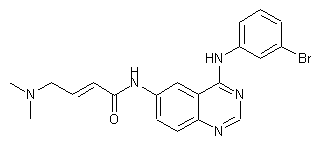 Methyl 4-bromocrotonate (VI) was hydrolyzed with barium hydroxide under controlled conditions and the resulting bromocrotonic acid (VII) was converted to the corresponding acid chloride (VIII) by treatment with oxalyl chloride. Condensation of acid chloride (VIII) with amino quinazoline (V) produced the bromocrotonamide (IX). Finally, nucleophilic displacement of the allylic bromine with dimethylamine provided the title compound.