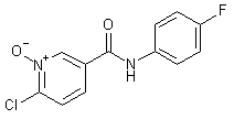 6-Chloronicotinic acid (I) was converted to the corresponding N-oxide (II) using trifluoroperacetic acid. Acid (II) was subsequently condensed with 4-fluoroaniline (III) using EEDQ as the coupling reagent to provide the target amide.