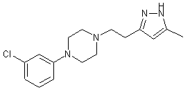 By reacting 0.1 mol 3-chloroethyl-5-methylpyrazole (I) with 0.2 mol 1-(3-chlorophenyl) piperazine (II), and triturating the product with ether for separation of 3-chlorophenyl-1-piperazine hydrochloride. Evaporating the ether extract, mepiprazole (as dihydrochloride) is obtained by treating with gaseous hydrochloric acid in ethanol.