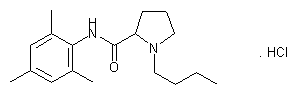 By the reaction of alpha-bromo-delta-chlorovaleric acid chloride (I) with 2,4,6-trimethylaniline (II) and cyclization of the obtained amide (III) with n-butylamine (IV).