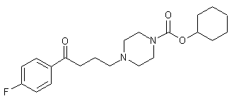 By condensation of p-fluoro-gamma-chlorobutyrophenone (I) with cyclohexyl piperazine-N-carboxylate (II) by means of Na2CO3 and Nal in refluxing xylene.