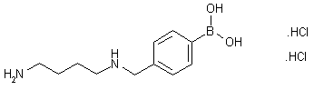 The mono-Boc-protected diamine (II) was obtained by reaction of 1,4-diaminobutane (I) with Boc2O. Reductive alkylation of (II) to the benzylic amine (V) was carried out in a two-step procedure consisting in condensation of amine (II) with the formyl boronic ester (III) in the presence of molecular sieves, followed by reduction of the resultant imine (IV) with NaBH4. The N-Boc protecting group of (V) was then removed by acidic treatment, yielding diamine (VI). The title boronic acid was finally obtained by boronate ester exchange in (VI) with phenylboronic acid in a two-phase system.
