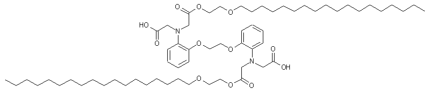 Treatment of bis(2-aminophenoxy)ethane-N,N,N',N'-tetraacetic acid (I) with acetic anhydride in hot pyridine produced the cyclic anhydride (II). Ethyleneglycol mono-ether (V) was prepared by Williamson's synthesis from the sodium alkoxide of ethylene glycol (IV) and octadecyl bromide (III). Then, heating the bis-anhydride (II) with ethyleneglycol monoether (V) produced the title diester