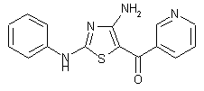 The reaction of N1-amidino-N3-phenylthiourea (I) with 2-bromo-1-(3-pyridyl)ethanone (II) in ethanol/acetone gives the N1-amidino-S-[2-oxo-2-(3-pyridyl)ethyl]-N3-phenylisothiourea (III), which without isolation is cyclized to the target aminothiazole by means of TEA.