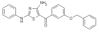 The reaction of N1-amidino-N3-phenylthiourea (I) with 3-(benzyloxy)phenacyl bromide (II) in ethanol/acetone gives the N1-amidino-S-[2-(3-benzyloxyphenyl)-2-oxoethyl]-N3-phenylisothiourea (III), which without isolation is cyclized to the target aminothiazole by means of TEA.