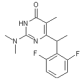 The methylation of 2-(2,6-difluorophenyl)acetic acid (I) with Me-Cl and LDA in THF/HMPA gives 2-(2,6-difluorophenyl)propionic acid (II), which is condensed with 2-methylmalonic acid monoethyl ester potassium salt (III) to yield 4-(2,6-difluorophenyl)-2-methyl-3-oxopentanoic acid (IV). The cyclization of (IV) with thiourea (V) affords 6-[1-(2,6-difluorophenyl)ethyl]-5-methyl-2-thioxo-1,2,3,4-tetrahydropyrimidin-4-one (VI), which is finally alkylated with methyl chloride to provide the target pyrimidinone derivative.