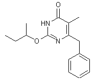Condensation of 4-(3-methylphenyl)-3-oxobutanoic acid methyl ester (I) with O-methyl isourea (II) led to the formation of 6-(3-methylbenzyl)-3,4-dihydro-2-methoxy-4-oxopyrimidine (III). Subsequent displacement of the methoxy group linked at C-2 of the pyrimidine ring by treatment with sec-butoxy potassium salt furnished 2-sec-butoxy-5-methyl-6-benzyl-3,4-dihydro-4-oxopyrimidine