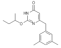 Condensation of 4-(3,5-dimethylphenyl)-3-oxobutanoic acid methyl ester (I) with O-methyl isourea (II) led to the formation of 6-(3,5-dimethylbenzyl)-3,4-dihydro-2-methoxy-4-oxopyrimidine (III). Subsequent displacement of the methoxy group linked at C-2 of the pyrimidine ring by treatment with sec-butoxy potassium salt furnished 2-sec-butoxy-6-(3,5-dimethylphenyl)-3,4-dihydro-4-oxopyrimidine