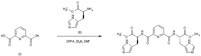 The title compound has been prepared by two related procedures. 2,6-Pyridinedicarboxylic acid (I) was condensed with L-histidine methyl ester (II) using diphenyl phosphoryl azide as the coupling reagent to afford the target diamide.