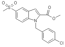 The title compound was obtained by the alkylation of methyl 5-(methylsulfonyl)indole-2-carboxylate (I) with 4-chlorobenzyl bromide (II) in the presence of KOH.