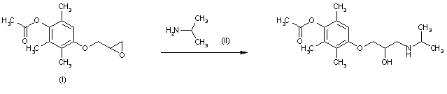 The condensation of the epoxide (I) with isopropylamine (II) gives the target isopropanol derivative.
