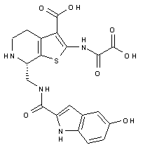 The desired minor isomer (XII) was subjected to hydrazinolysis to provide amine (XIV). Selective acylation at the aliphatic amino group of (XIV) with 5-hydroxyindole-2-carboxylic acid (XV) in the presence of EDC as the coupling reagent furnished amide (XVI). The remaining primary amino group of (XVI) was subsequently acylated by the oxalyl imidazolide (XVII) producing oxalamide (XVIII). The chiral auxiliary alpha-methylbenzyl group of (XVIII) was then removed by transfer hydrogenolysis with formic acid and Pd/C, producing the secondary amine (XIX). Finally, tert-butyl esters cleavage in (XIX) was accomplished by treatment with trifluoroacetic acid to yield the corresponding dicarboxylic acid.