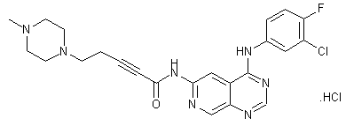 The title amide was prepared by coupling of 6-amino-4-(3-chloro-4-fluorophenylamino)pyrido[3,4-d]pyrimidine (I) with 5-(4-methyl-1-piperazinyl)-2-pentynoic acid (II) in the presence of EDC.