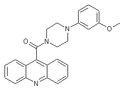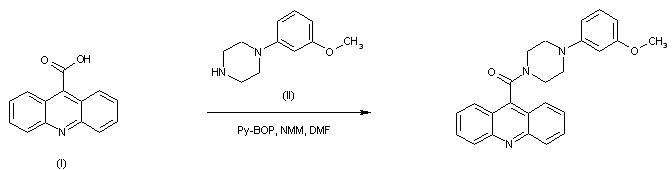 The title amide is prepared by coupling between 9-acridinecarboxylic acid (I) and N-(3-methoxyphenyl)piperazine (II) in the presence of PyBOP and NMM