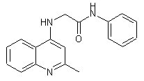 Acylation of aniline (I) with chloroacetyl chloride (II) in cold CH2Cl2 provides 2-chloro-N-phenylacetamide (III). Then, condensation of (III) with 4-aminoquinaldine (IV) in the presence of NaH in an inert atmosphere furnishes the title compound