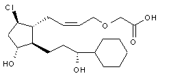 The title prostaglandin derivative was synthesized by two methods. The benzoate ester group of the known lactone precursor (I) was removed by methanolysis in the presence of K2CO3 to afford diol (II), which was further protected as the bis-tetrahydropyranyl ether (III). Catalytic hydrogenation of (III) provided the 13,14-dihydro compound (IV). The lactone function of (IV) was then reduced with LiAlH4 to the corresponding open chain diol, which was subsequently protected as the bis-silyl derivative (V). Regioselective Swern oxidation of the silylated primary hydroxyl of (V) furnished aldehyde (VI). This was subjected to Wadsworth-Emmons olefination with phosphonate (VII) in the presence of tris[2-(2-methoxyethoxy)ethyl]amine (TDA-1) as the K+-complexing agent to yield the Z-unsaturated ester (VIII) as the major isomer. Ester group reduction in (VIII) by means of DIBAL, followed by desilylation with tetrabutylammonium fluoride, provided the allylic alcohol (IX).