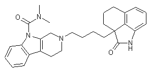 Tetrahydrobenzo[cd]indol-2-one (IV) is selectively alkylated at position 2a with 1,4-dibromobutane (V) in the presence of NaH to provide the bromobutyl derivative (VI). Then, condensation of bromide (VI) with amine (III) employing K2CO3 in DMF leads to the title compound.