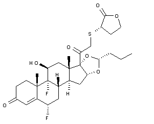 Fluocinolone acetonide (I) was selectively mesylated at the primary alcohol group by means of methanesulfonyl chloride and pyridine. Treatment of the resulting mesylate (II) with alpha-mercapto-gamma-butyrolactone (IV) in the presence of NaH in THF produced the desired thioether derivative.