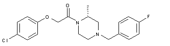 Alkylation of (R)-2-methylpiperazine (I) with 4-fluorobenzyl bromide (II) provides 1-(4-fluorobenzyl)-3-methylpiperazine (III). Subsequent acylation of piperazine (III) with (4-chlorophenoxy)acetyl chloride (IV) furnishes the title amide.
