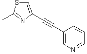 Chloroacetyl chloride (I) is condensed with bis(trimethylsilyl)acetylene (II) in the presence of AlCl3 to provide 1-chloro-4-(trimethylsilyl)-3-butyn-2-one (III). Cyclization of chloro ketone (III) with thioacetamide (IV) affords the ethynylthiazole derivative (V). Finally, palladium-catalyzed coupling of (V) with 3-bromopyridine (VI) gives rise to the target diarylacetylene.