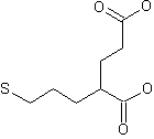 Acylation of Meldrum's acid (I) with 3-tryphenylmethylsulfanyl)propionic acid (II) by means of DCC produces the intermediate adduct (III), which is subsequently reduced to the tritylsulfanyl derivative (IV) by using NaBH4/AcOH. Alkylation of (IV) with methyl 3-bromopropionate (V) in the presence of NaOMe provides the 5,5-disubstituted dioxanedione (VI). Basic hydrolysis of (VI) gives rise to the tricarboxylic acid (VII), which is further decarboxylated to (VIII) in hot DMSO. Finally the S-trityl protecting gropu is removed by treatment with trifluoroacetic acid and triisopropylsilane.