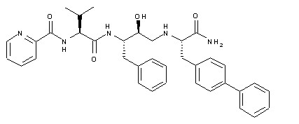 Coupling between epoxide (I) and amine (II) affords amino alcohol (III). The amino group of (III) is then protected with benzyl chloroformate to provide carbamate (IV). Removal of the N-Boc group of (IV) with trifluoroacetic acid yields amine (V), which is subsequently coupled with N-Boc-L-valine (VI) by means of TBTU to furnish amide (VII). After acidic Boc group cleavage in (VII), the resultant amine (VIII) is acylated by picolinic acid (IX) producing amide (X).