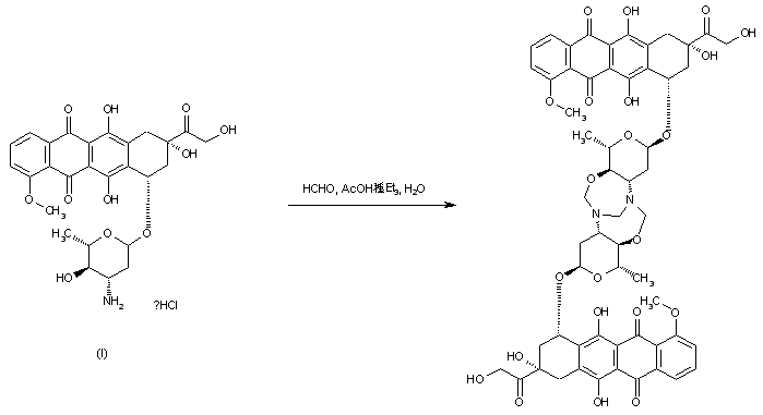 The title compound is obtained by dimerization of epidoxorubicin hydrochloride (I) in the presence of an excess of formaldehyde in a triethylammonium acetate buffer at pH 6. (1-3)