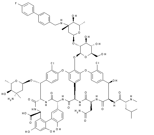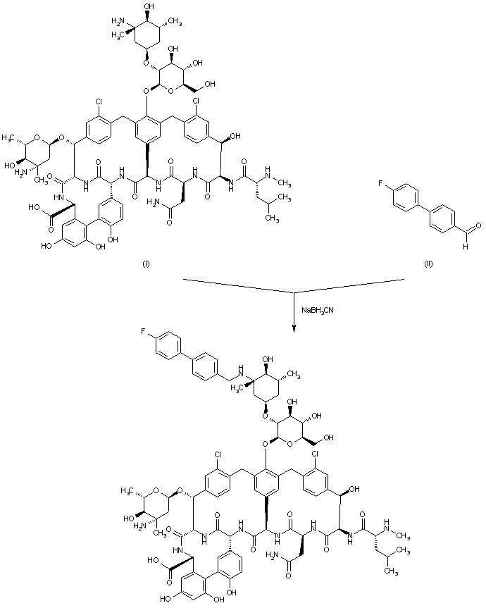 The target compound has been obtained by reductocondensation of glycopeptide (I) with 4'-fluorobiphenyl-4-carbaldehyde (II) by means of sodium cyanoborohydride in DMF/methanol.
