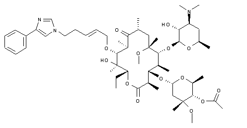 Alkylation of clarithromycin diacetate (I) with allyl t-butyl carbonate (II) in the presence of palladium catalyst affords the 11-O-allyl ether (III). Subsequent metathesis reaction between ally ether (III) and 1-butenyl-4-phenylimidazole (IV) employing Grubb's catalyst provides adduct (V). Finally, methanolysis of the 2'-acetate ester of (V) gives rise to the target compound.