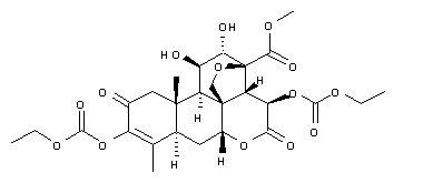 Bruceolide (I) is reacted with ethyl chloroformate in pyridine to provide the title 3,15-bis(ethylcarbonate) derivative.