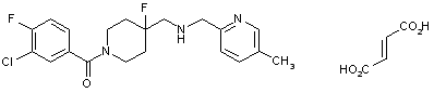Ring opening of epoxide (I) with hydrogen fluoride-pyridine complex affords the fluorohydrin (II). After conversion of (II) to the corresponding tosylate (III), reaction with potassium phthalimide in boiling DMF furnishes the substituted phthalimide (IV). Hydrolysis of phthalimide (IV) in hot ethanolamine gives rise to the primary amine (V). Condensation of (V) with 5-methylpyridine-2-carbaldehyde (VI) leads to imine (VII). Finally, reduction of imine (VII) to the corresponding amine with methanolic KBH4, followed by conversion to the fumarate salt provides the title compound.