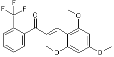 The title chalcone derivative is prepared by Claisen-Schmidt condensation between 2'-(trifluoromethyl)acetophenone (I) and 2,4,6-trimethoxybenzaldehyde (II) in the presence of NaOH.