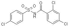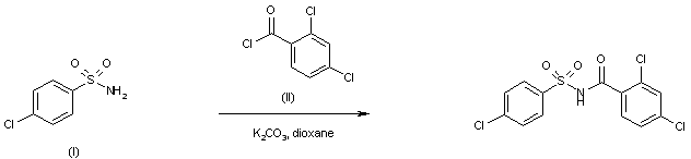The title N-acyl sulfonamide is prepared by condensation of 4-chlorophenylsufonamide (I) with 2,4-dichlorobenzoyl chloride (II) in the presence of K2CO3.