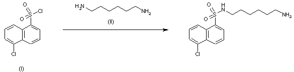 By condensation of 5-chloronaphthalenesulfonyl chloride (I) with 1,6-diaminohexane (II) in refluxing dioxane