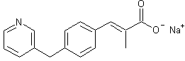 The reaction of 3-chloromethylpyridine (I) with the Grignard reagent of 4-bromobenzaldehyde diethylacetal (II) in THF gives 4-(3-pyridylmethyl)benzaldehyde diethylacetal (III), which is hydrolyzed with aqueous 1N HCl to 4-(3-pyridylmethyl)benzaldehyde (IV). The Wittig condensation of (IV) with 1-(ethoxycarbonyl)ethylidenetriphenylphosphorane (V) in CHCl3 affords 3-[4-(3-pyridylmethyl)phenyl]-2-methylacryl ic acid ethyl ester (VI), which is finally hydrolyzed with aqueous NaOH.