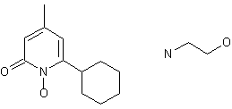 Compound can be prepared in two different ways: 1) The reaction of methyl 5-oxo-5-cyclohexyl-3-methylpentenoate (I) with NH2OH gives the corresponding oxime (II), which is then cyclized to 6-cyclohexyl-1-hydroxy-4-methyl-2(1H)-pyridone (III). Finally, this compound is salified with ethanolamine (IV). 2) Compound (III) can also be obtained by reaction of 6-cyclohexyl-4-methyl-2-pyron (V) with hydroxylamine hydrochloride in hot 2-aminopyridine.