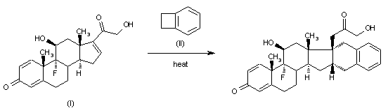 By condensation of 9-fluoro-11-beta-21-dihydroxypregna-1,4,16-triene-3,20-dione (I) with benzocyclobutene (II) at reflux temperature in nitrogen atmosphere.