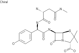 Compound (VII) can also be obtained by condensation of 6-aminopenicillanic acid (VIII) with the N-succinimido ester of alpha-[2-(2-nitrophenylsulfonylamino)-3-(N-methylcarbamoyl)propionamido]-alpha-(4-hydroxyphenyl)acetic acid (IX). Finally, the sulfonic group of (VII) is eliminated by treatment with thiobenzamide (A) in ethanol-THF.