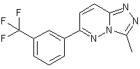 The reaction of 3-trifluoromethylbenzaldehyde (I) with morpholine (II) and potassium cyanide by means of p-toluenesulfonic acid in refluxing THF gives alpha-(3-trifluoromethylphenyl)-4-morpholineacetonitrile (III), which is condensed with ethyl acrylate (IV) by means of KOH in THF yielding gamma-cyano-gamma-(3-trifluoromethylphenyl)-4-morpholinebutyric acid ethyl ester (V). The cyclization of (V) with hydrazine in refluxing ethanol affords 4,5-dihydro-6-(3-trifluoromethylphenyl)-3(2H)-pyridazinone (VI), which is dehydrogenated by treatment with Br2 in hot acetic acid to give 6-(3-trifluoromethylphenyl)-3(2H)-pyridazinone (VII). The reaction of (VII) with POCl3 at 100 C affords 3-chloro-6-(3-trifluoromethylphenyl)pyridazine (VIII), which is finally cyclized with acetylhydrazine (IX) in refluxing n-butanol.