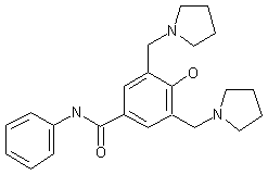 The reaction of aniline (I) with 4-hydroxybenzoic acid (II) by means of P2O5 in refluxing toluene gives N-(4-hydroxybenzoyl)aniline (III), which is then condensed with pyrrolidine (IV) and formaldehyde (V) in refluxing ethanol.