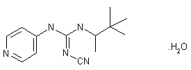 This compound can be obtained in two related ways: 1) By reaction of N-(4-pyridyl)-N'-(1,2,2-trimethylpropyl)thiourea (I) with cyanamide (II) by means of dicyclohexylcarbodiimide (DCC) and ethyldiisopropylamine in ether. 2) The reaction of (I) with phosgene in toluene - THF by means of ethyldiisopropylamine in THF gives N-(4-pyridyl)-N'-(1,2,2-trimethylpropyl)carbodiimide (III), which is condensed with (II) by means of ethyldiisopropylamine.