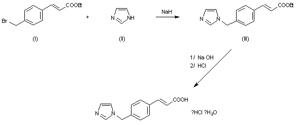 The condensation of ethyl 4-(bromomethyl)cinnamate (I) with imidazole (II) by means of NaH in DMF give ethyl 4-(1-imidazolylmethyl)cinnamate (III), wich is hydrolyzed with NaOH in methanol - water, and acidified with HCl.